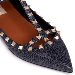 Your Position: Home » Valentino » Valentino Flats » VALENTINO ROCKSTUD BALLERINA CAGED PEBBLE LEATHER FLATS Deep Denim
