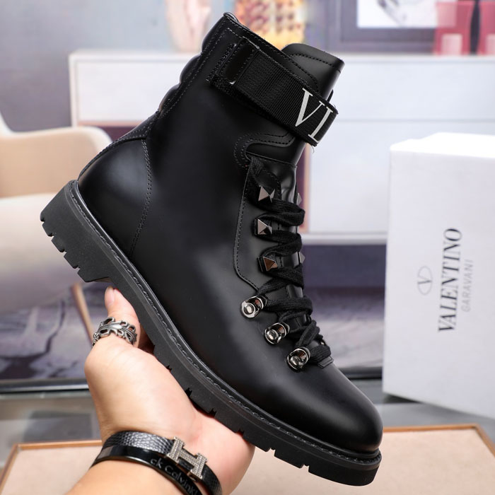 Product Name: Valentino 2019 New Style Short Boots Black Leather VLTN Logo