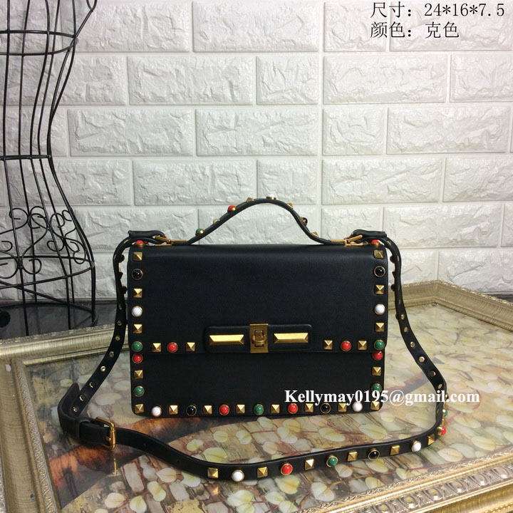Your Position: Home » Valentino » Valentino Bags » Valentino Garavani 3923 Starstudded Leather Shoulder Bag Black
