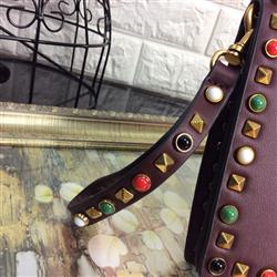 Product Name: Valentino Garavani 5501 Starstudded Leather Clutch Bag Wine