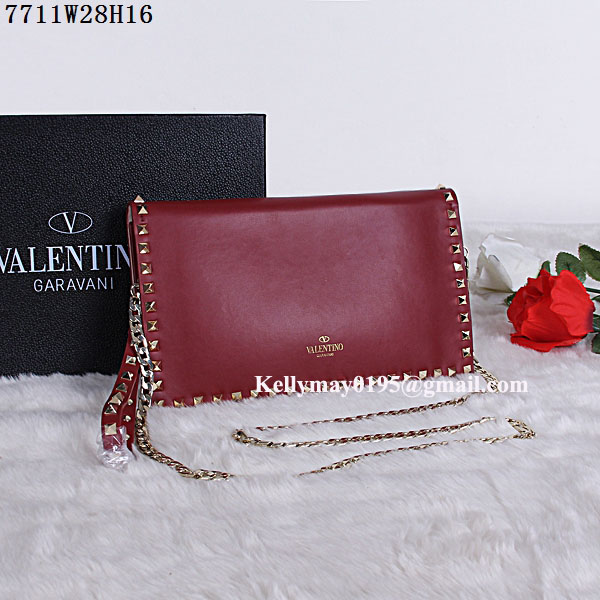 Product Name: Valentino Garavani 7711 Rockstud Leather Clutch Bag Wine