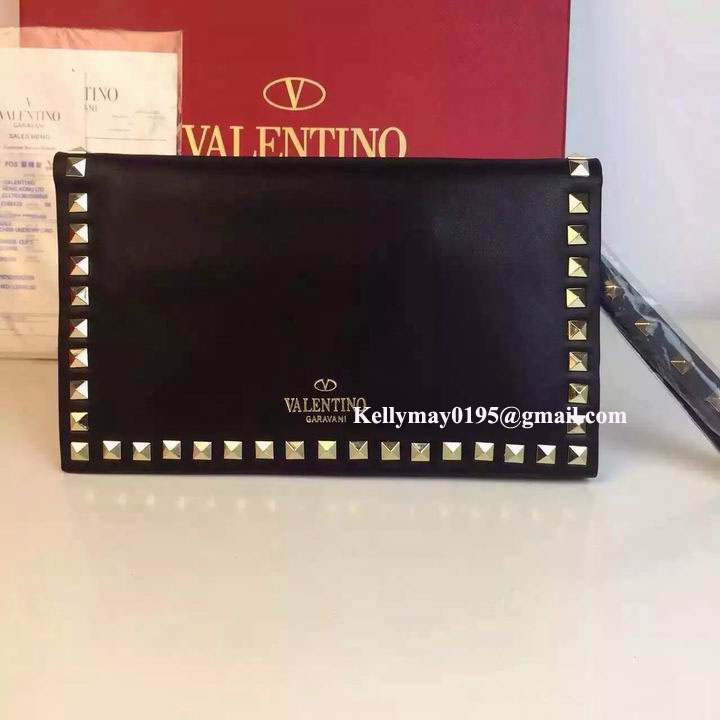 Product Name: Valentino Garavani 9782 Rockstud Leather Clutch Bag Black