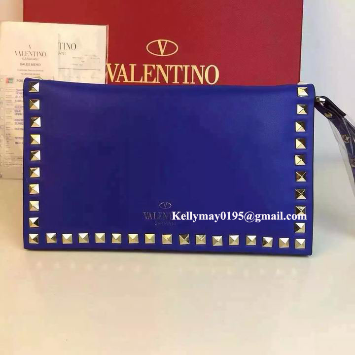 Product Name: Valentino Garavani 9782 Rockstud Leather Clutch Bag Blue