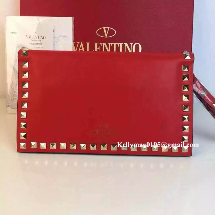 Product Name: Valentino Garavani 9782 Rockstud Leather Clutch Bag Red