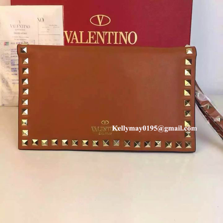 Your Position: Home » Valentino » Valentino Bags » Valentino Garavani 9782 Rockstud Leather Clutch Bag Tan