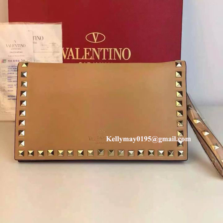 Product Name: Valentino Garavani 9782 Rockstud Leather Clutch Bag apricot
