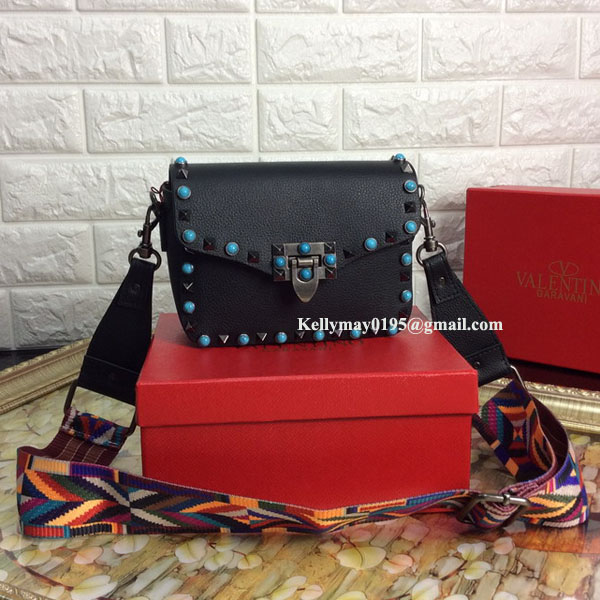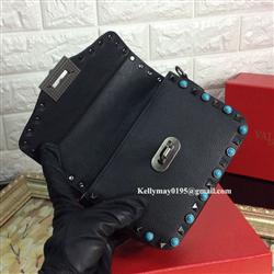 Your Position: Home » Valentino » Valentino Bags » Valentino Garavani Blue Stone Clemence Leather Shoulder Bag Black
