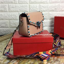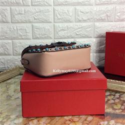 Product Name: Valentino Garavani Blue Stone Clemence Leather Shoulder Bag Nude