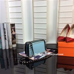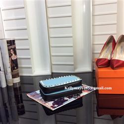 Product Name: Valentino Garavani Double Zipper Rockstud Leather Clutch Bag Light Blue