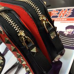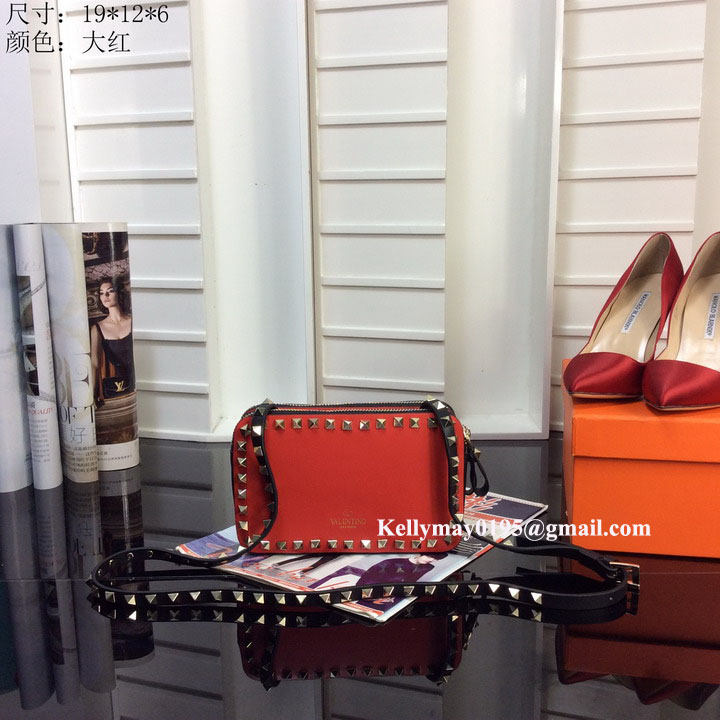 Product Name: Valentino Garavani Double Zipper Rockstud Leather Clutch Bag Red