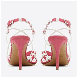 Your Position: Home » Valentino » Valentino Sandals » Valentino Garavani Free Rockstud suede sandal white and Bright pink 85mm