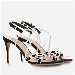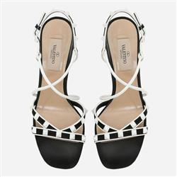 Product Name: Valentino Garavani Free Rockstud suede sandal white and black 85mm