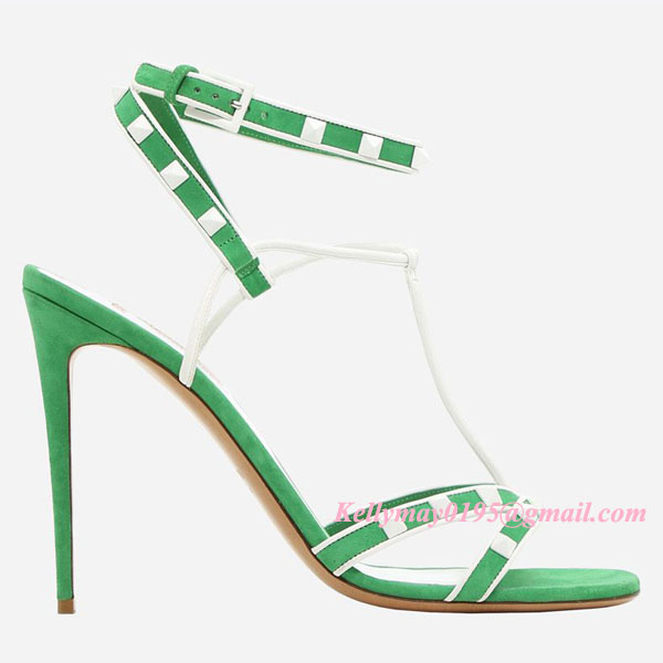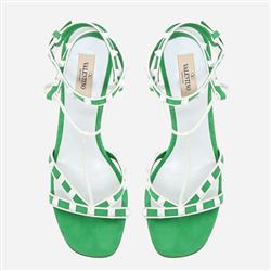 Product Name: Valentino Garavani Free Rockstud suede sandal white and green