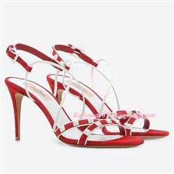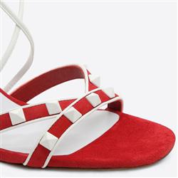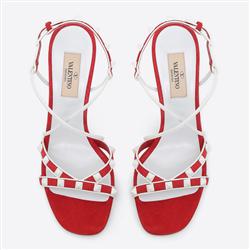 Product Name: Valentino Garavani Free Rockstud suede sandal white and red 85mm