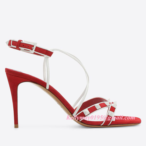 Your Position: Home » Valentino » Valentino Sandals » Valentino Garavani Free Rockstud suede sandal white and red 85mm