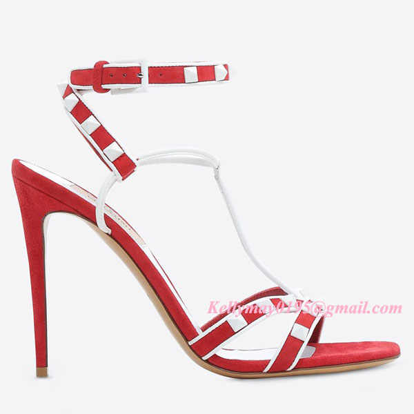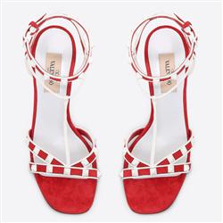 Product Name: Valentino Garavani Free Rockstud suede sandal white and red