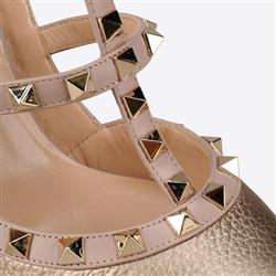 Product Name: Valentino Garavani Rockstud Ankle Strap in Laminated Elk Print Calfskin 100mm Gold