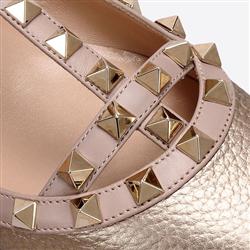 Your Position: Home » Valentino » Valentino Flats » Valentino Garavani Rockstud Ballet Flat in Laminated Elk Print Calfskin Gold
