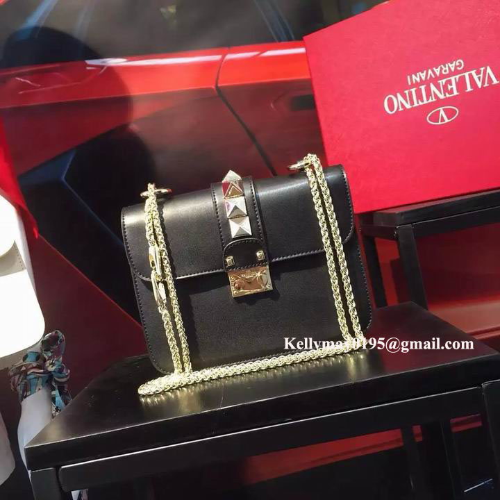 Product Name: Valentino Garavani Rockstud Glam Lock Rolling leather Shoulder Bag Black