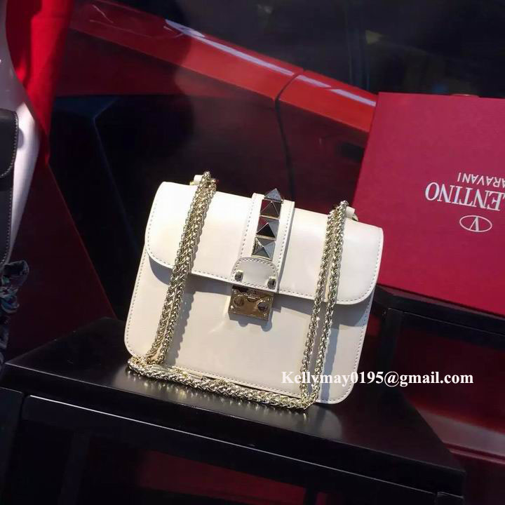 Your Position: Home » Valentino » Valentino Bags » Valentino Garavani Rockstud Glam Lock Rolling leather Shoulder Bag White