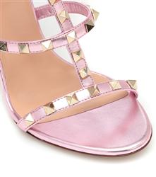 Product Name: Valentino Garavani Rockstud Ice-pink Metallic Leather Sandals 100mm Giacinto