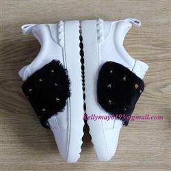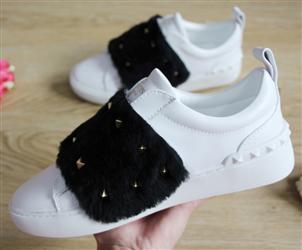 Product Name: Valentino Garavani Rockstud Open Mink Fur Leather Sneakers White & Black