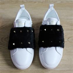 Your Position: Home » Valentino » Valentino Sneakers » Valentino Garavani Rockstud Open Mink Fur Leather Sneakers White & Black