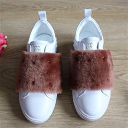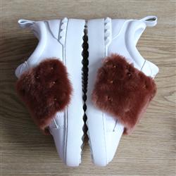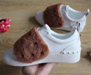 Product Name: Valentino Garavani Rockstud Open Mink Fur Leather Sneakers White & Brown