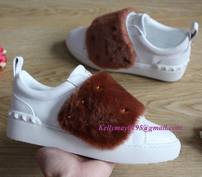 Your Position: Home » Valentino » Valentino Sneakers » Valentino Garavani Rockstud Open Mink Fur Leather Sneakers White & Brown