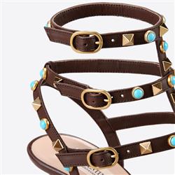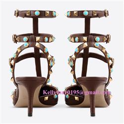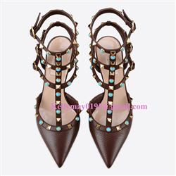 Your Position: Home » Valentino » Valentino Sandals » Valentino Garavani Rockstud Rolling ankle strap in Alce printed calfskin sandals 65mm wine