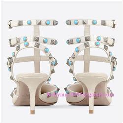 Your Position: Home » Valentino » Valentino Sandals » Valentino Garavani Rockstud Rolling ankle strap in Alce printed calfskin sandals white 65mm