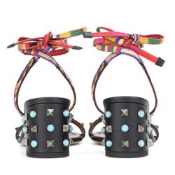 Product Name: Valentino Garavani Rockstud Rolling embellished leather sandals Nero Multicolore