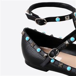 Product Name: Valentino Garavani Rockstud ballerina in Alce printed calfskin black flats Outlet