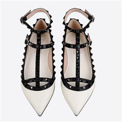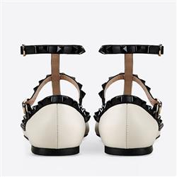Your Position: Home » Valentino » Valentino Flats » Valentino Garavani Rockstud ballerina in light ivory calfskin with black straps