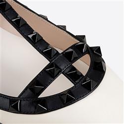 Product Name: Valentino Garavani Rockstud ballerina in light ivory calfskin with black straps