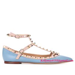 Product Name: Valentino Garavani Rockstud leather ballerinas flats shoes blue