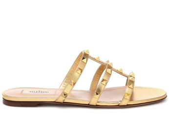 Product Name: Valentino Garavani Rockstud leather sandals Soft Gold