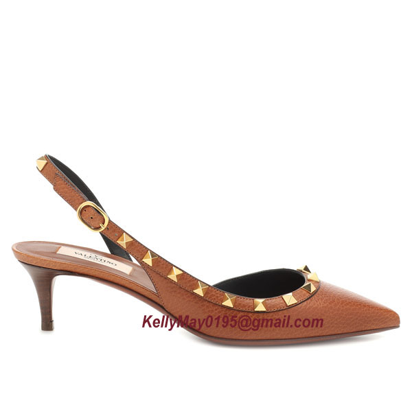 Product Name: Valentino Garavani Rockstud leather slingback pumps 60mm brown