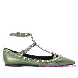 Your Position: Home » Valentino » Valentino Flats » Valentino Garavani Rockstud metallic leather ballerinas flats army green