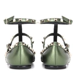 Product Name: Valentino Garavani Rockstud metallic leather ballerinas flats army green