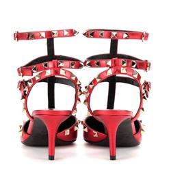 Your Position: Home » Valentino » Valentino Sandals » Valentino Garavani Rockstud metallic leather pumps sandals 65mm red