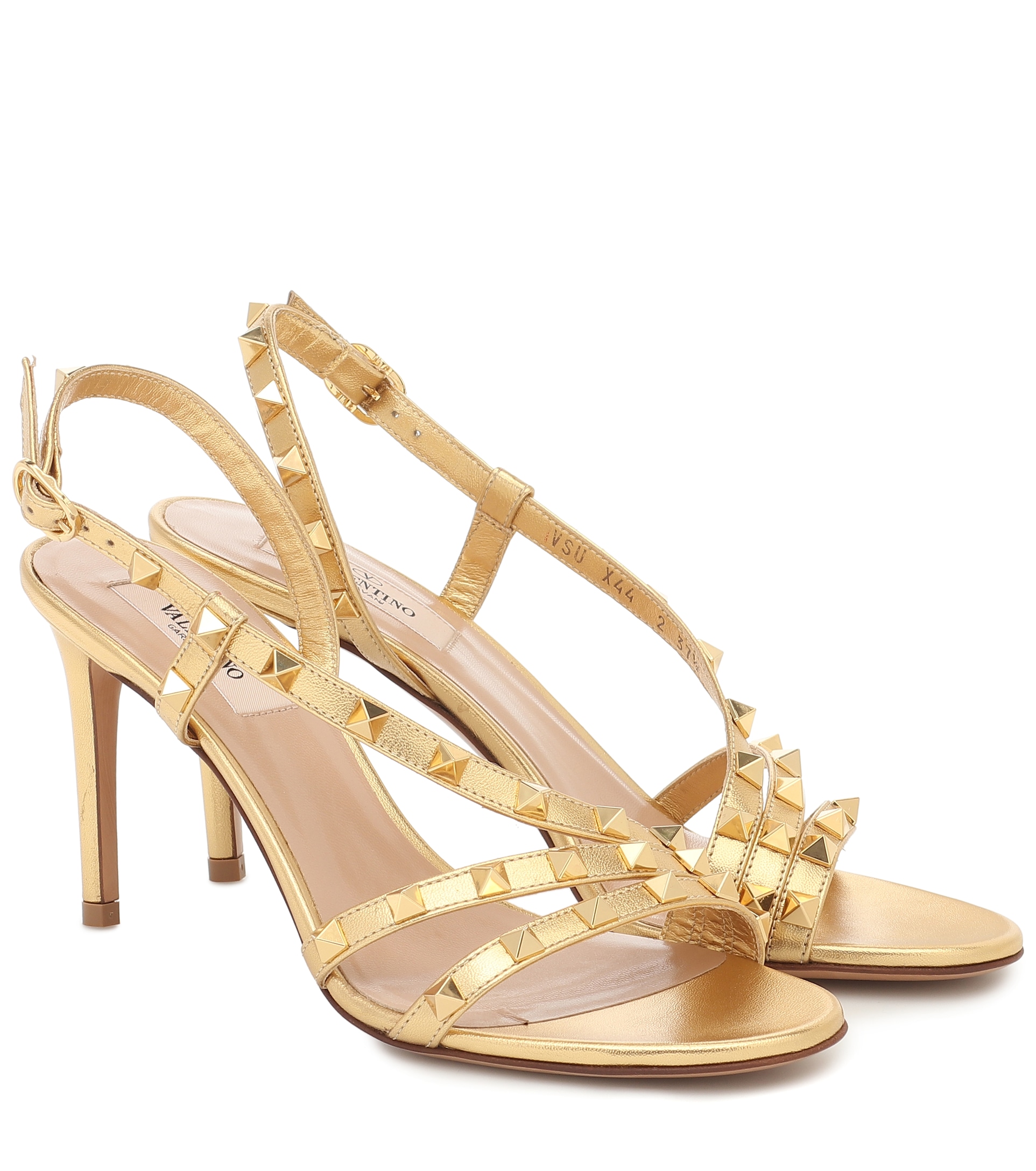 Product Name: Valentino Garavani Rockstud metallic leather sandals Soft Gold