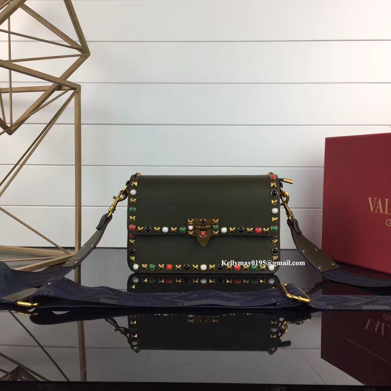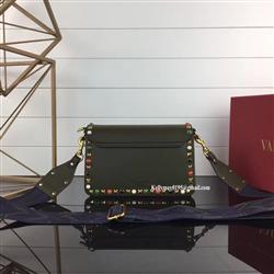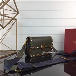 Product Name: Valentino Garavani Starstudded Leather Shoulder Bag Dark Green