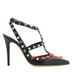 Product Name: Valentino Garavani Starstudded Rolling Leather Pumps Sandals 100mm Black