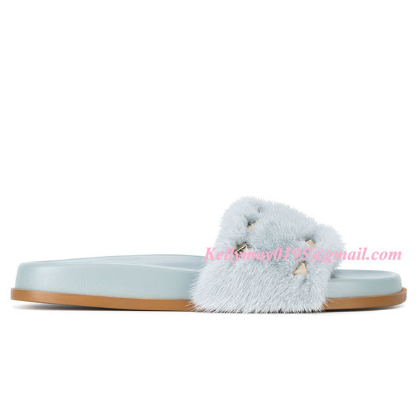 Product Name: Valentino Garavani mink fur slides Soft Blue