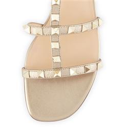 Product Name: Valentino Rockstud Leather Flat Sandal Gold