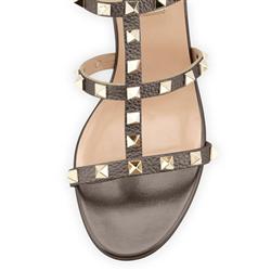 Product Name: Valentino Rockstud Leather Metallic Grained Leather City 60mm City Sandal Sasso