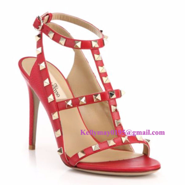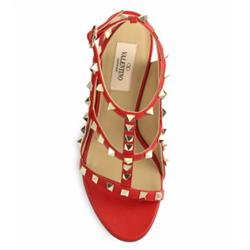 Your Position: Home » Valentino » Valentino Sandals » Valentino Rockstud Leather T-Strap Sandals Red