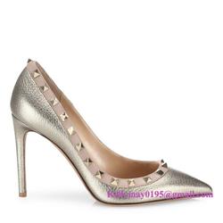 Product Name: Valentino Rockstud Metallic Leather Point-Toe Pumps