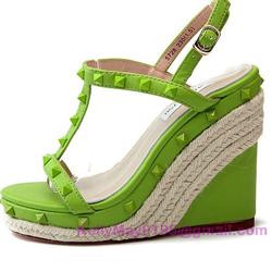 Product Name: Valentino Rockstud Shoes 100mm Studded Wedge Sandal Green